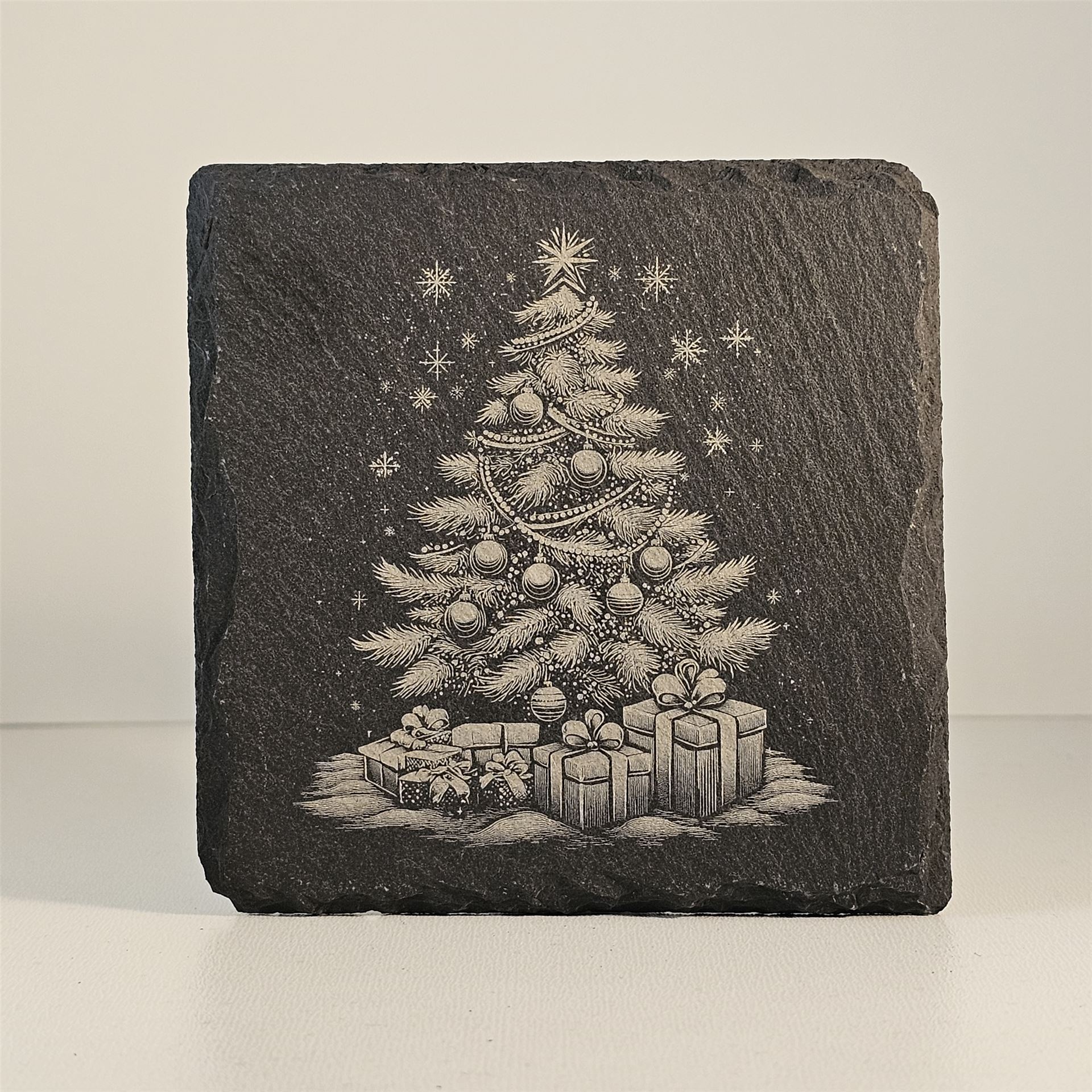 Die hochwertige Lasertechnik prägt die Gravur mit hoher Genauigkeit und Detailgetreue auf die Schieferplatte.